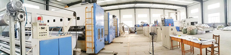 本生產線主要包括布邊角料開松機、棉箱、梳理機、鋪網機、針刺機、分切成卷機。采用服裝廠、制鞋廠、被服廠等布邊角料為原料,經開松、梳理成網、針刺、成卷而制成的具有一定拉力的纖維氈。該氈主要用于溫室大棚保溫,水產養殖、禽畜飼養,遮蓋混凝土精制品,沙發、床墊內用襯布,汽車內飾用布,蒙古包防寒用門簾等。